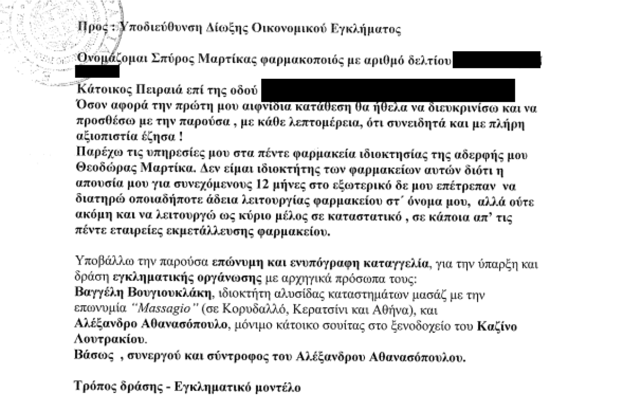 Το «Ε5» κατά αποκλειστικότητα παρουσιάζει, την αρχή του «μίτου της Αριάδνης» με την 13σελιδη επιστολή που έστειλε ο γνωστός φαρμακοποιός στην διεύθυνση οικονομικής αστυνομίας και περιέγραφε με κάθε λεπτομέρεια πως είχε στηθεί το παιχνίδι, του οποίου και ο ίδιος είχε λάβει μέρος, πως αποκάλυψε την απάτη και ποιος του άνοιξε τα μάτια με ένα τυχαίο τηλεφώνημα.