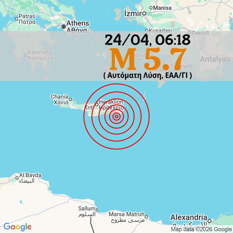 Η δόνηση σύμφωνα με την αναθεωρημένη λύση του Γεωδυναμικού Ινστιτούτου σημειώθηκε στα βορειοδυτικά του Λασιθίου, με το εστιακό βάθος να υπολογίζεται στα 9,7 χλμ.
