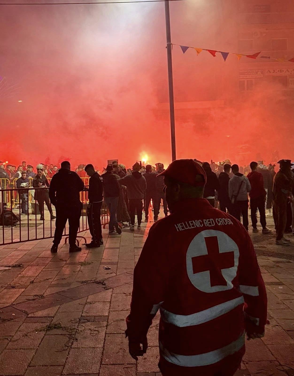 Παράλληλα, κινητές ομάδες εθελοντών του Ε.Ε.Σ., πλήρως εξοπλισμένες με υγειονομικό και διασωστικό εξοπλισμό, κάλυψαν κάθε έκτακτο περιστατικό στους δρόμους, δίνοντας ιδιαίτερη έμφαση στα σημεία της πόλης που η πρόσβαση είναι εφικτή μόνο από πεζούς.