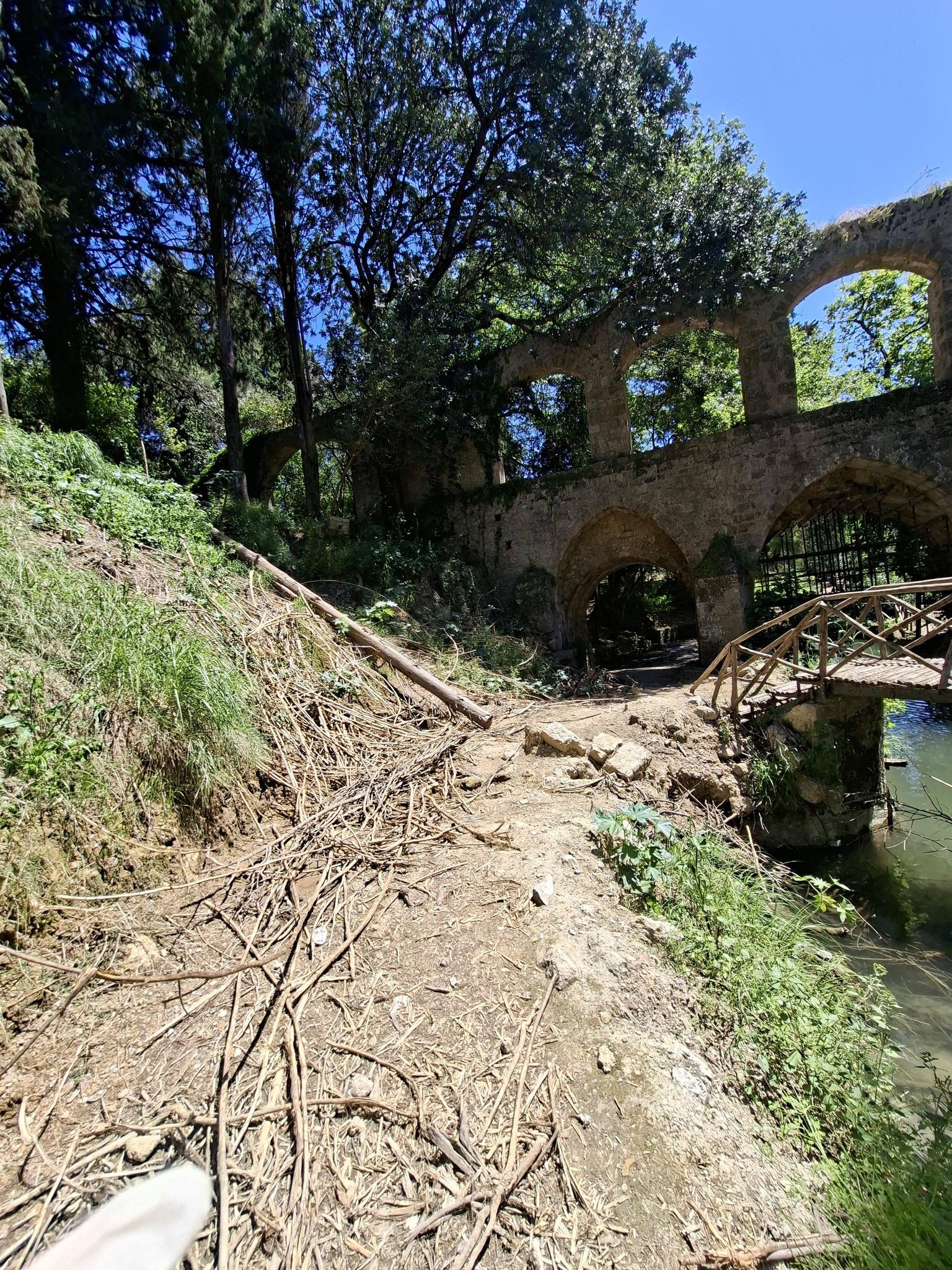 Κλαδιά κορμοί δέντρων, σπασμένα κάγκελα .ένας χαμός..