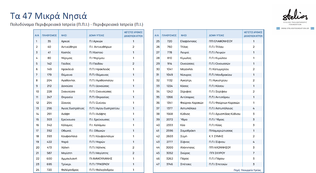 Δωρεά 10 εκατ. ευρώ για την παραμονή 80 ιατρών σε 47 Μικρά Νησιά της Ελλάδας με Περιφερειακά και Πολυδύναμα Περιφερειακά Ιατρεία