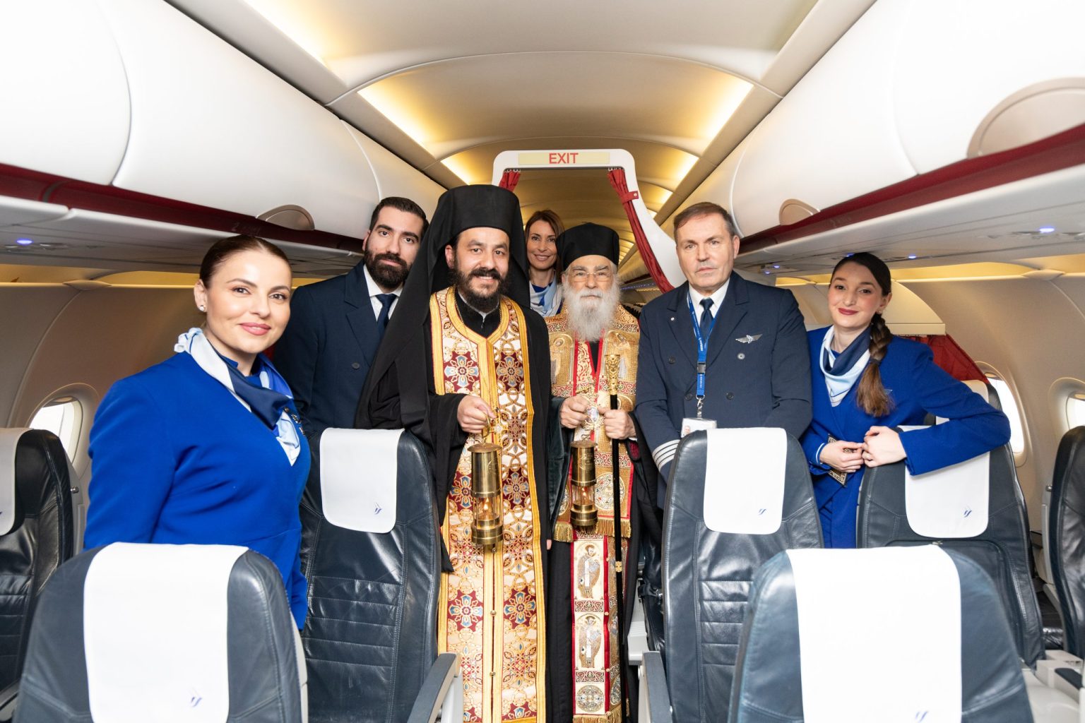 Ειδικότερα, το αεροσκάφος τύπου Airbus A320 της AEGEAN και ολιγομελή αποστολή από την Εξαρχία του Παναγίου Τάφου στην Κύπρο προσγειώθηκε στο αεροδρόμιο «Γλαύκος Κληρίδης» της Λάρνακας λίγο μετά τις απογευματινές ώρες από το Τελ Αβίβ.